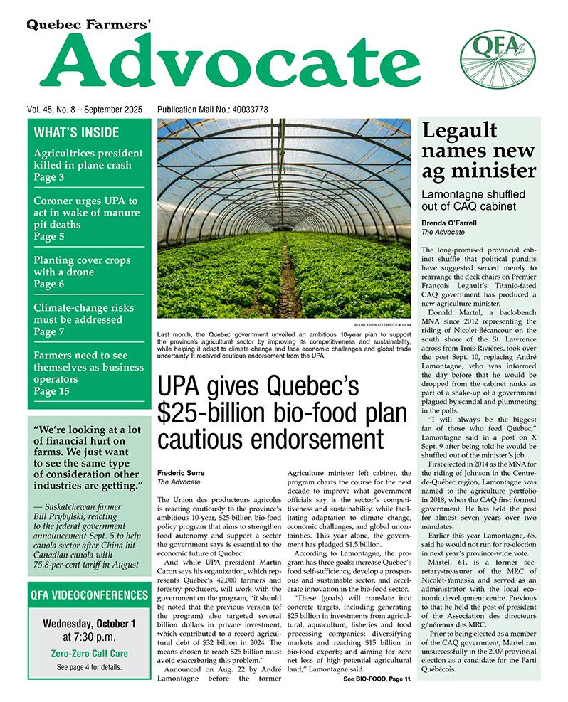 The Quebec Farmers’ Advocate newspaper is the QFA’s flagship communications tool. Delivered to 100% of the English-speaking farming community in Quebec, it’s no exaggeration to say that every issue is read cover-to-cover. The paper is not only a community newspaper, but also the only business-to-business paper of its kind. If you wish to connect to the English-speaking rural and agricultural population of Quebec, The Quebec Farmers’ Advocate is the only way to go.